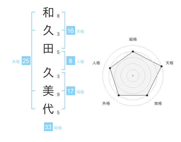 和久田 久美代さんを姓名の画数から五運を鑑定