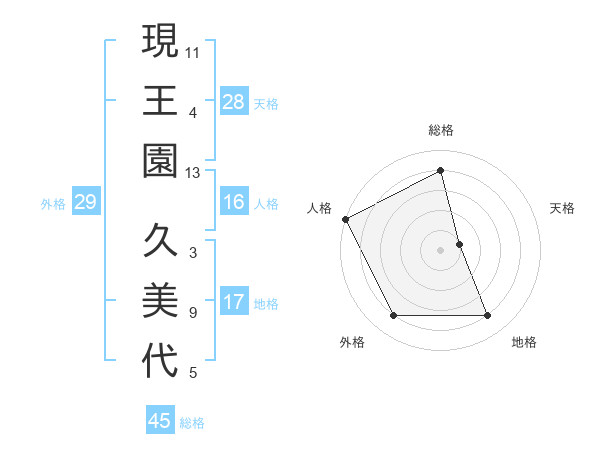現王園 久美代さんの総格は45画の4点!