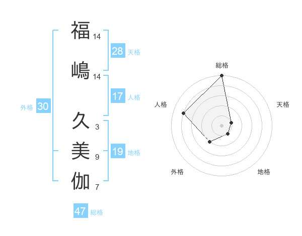 福嶋 久美伽さんを姓名の画数から五運を鑑定