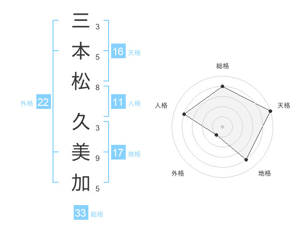 三本松 久美加さんを姓名の画数から五運を鑑定