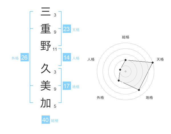 三重野 久美加さんを姓名の画数から五運を鑑定