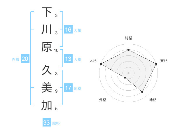 下川原 久美加さんを姓名の画数から五運を鑑定