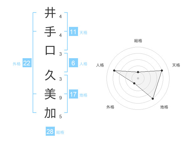 井手口 久美加さんの地格は17画の4点!