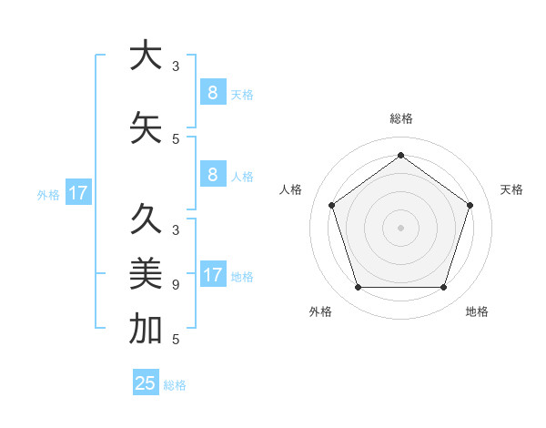 大矢 久美加さんを姓名の画数から五運を鑑定