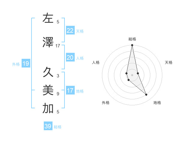 左澤 久美加さんの外格は19画の1点!