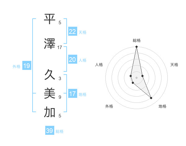 平澤 久美加さんを姓名の画数から五運を鑑定