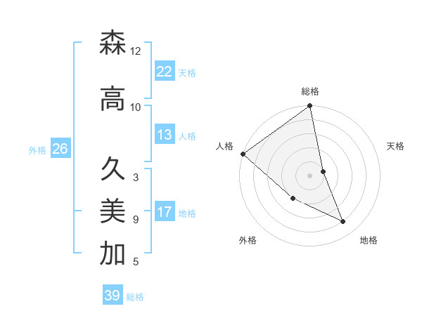森高 久美加さんの総格は39画の5点!