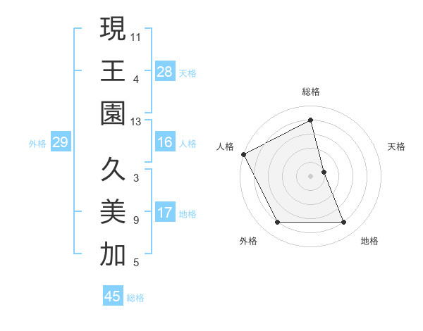 現王園 久美加さんを姓名の画数から五運を鑑定
