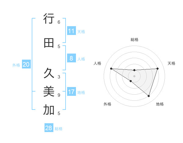 行田 久美加さんの総格は28画の1点!