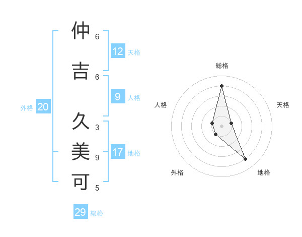 仲吉 久美可さんの総格は29画の4点!