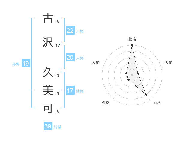古沢 久美可さんを姓名の画数から五運を鑑定