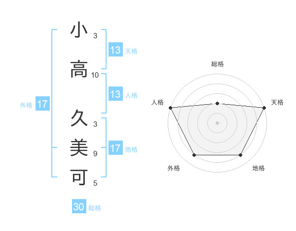 小高 久美可さんの天格は13画の5点!