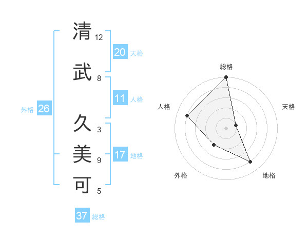 清武 久美可さんを姓名の画数から五運を鑑定