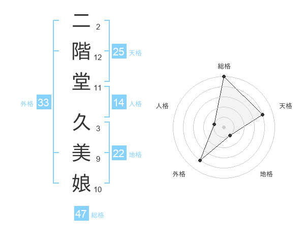 二階堂 久美娘さんを姓名の画数から五運を鑑定