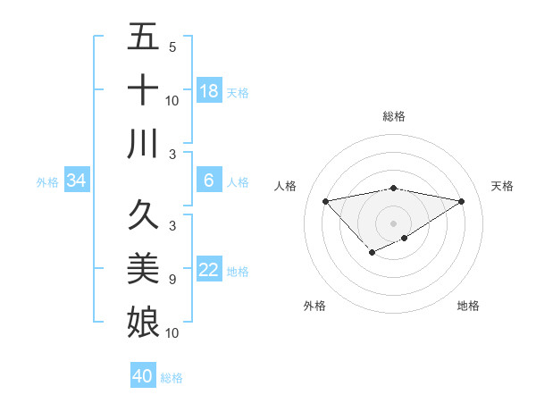 五十川 久美娘さんを姓名の画数から五運を鑑定