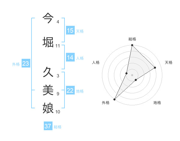 今堀 久美娘さんを姓名の画数から五運を鑑定