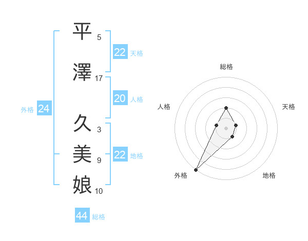 平澤 久美娘さんを姓名の画数から五運を鑑定