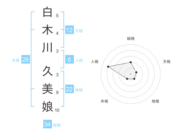 白木川 久美娘さんの総格は34画の2点!