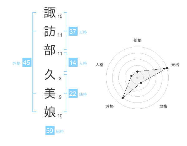 諏訪部 久美娘さんを姓名の画数から五運を鑑定