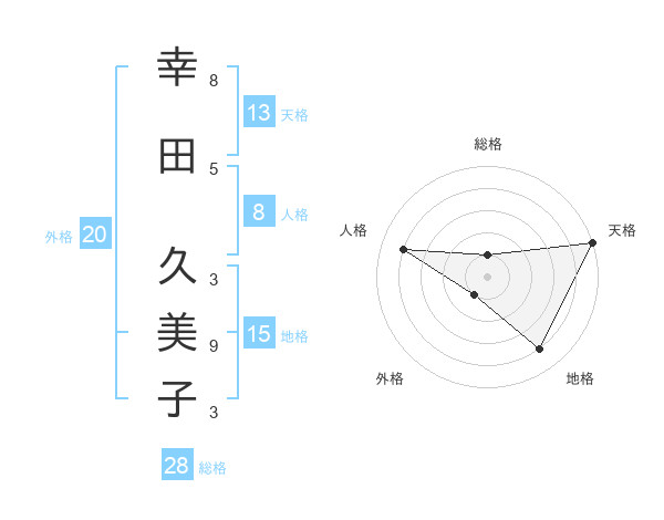 幸田 久美子さんの総格は28画の1点!
