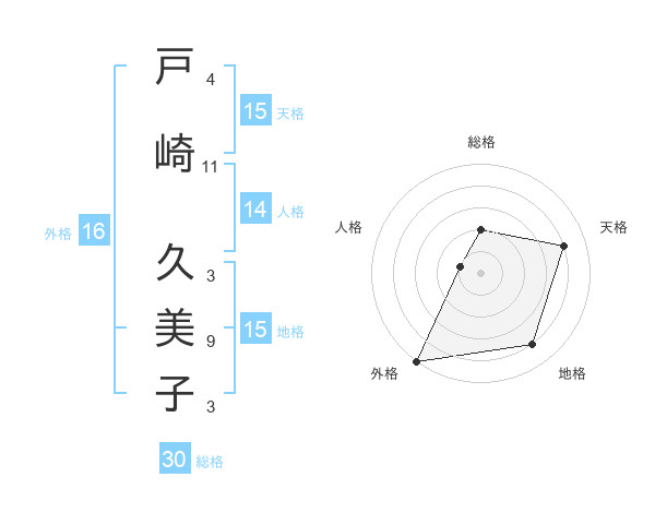 戸崎 久美子さんの天格は15画の4点!