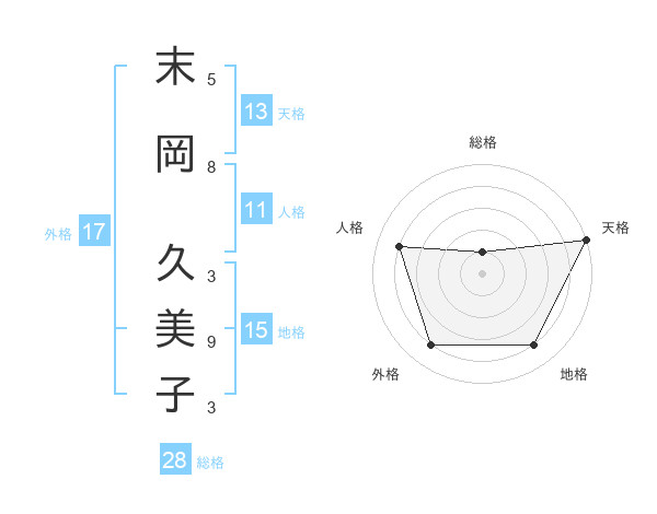 末岡 久美子さんの総格は28画の1点!