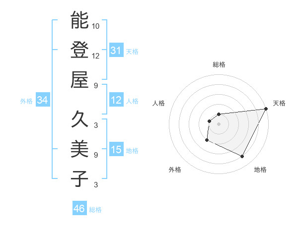 能登屋 久美子さんを姓名の画数から五運を鑑定