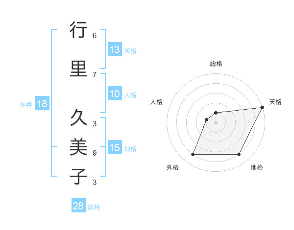 行里 久美子さんの外格は18画の4点!
