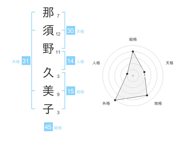 那須野 久美子さんを姓名の画数から五運を鑑定