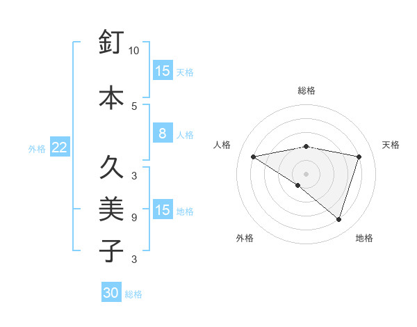 釘本 久美子さんを姓名の画数から五運を鑑定