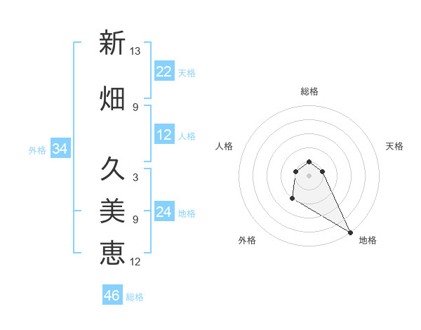 新畑 久美恵さんの天格は22画の1点!