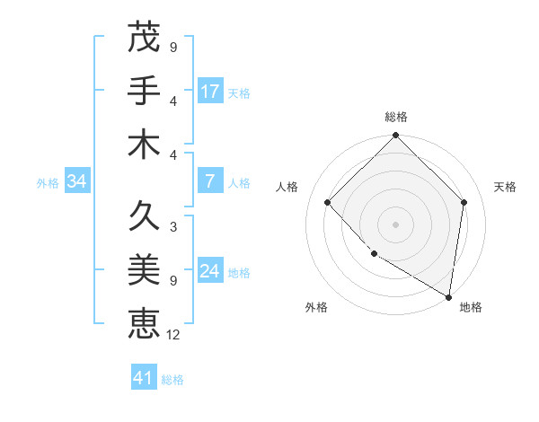 茂手木 久美恵さんの天格は17画の4点!