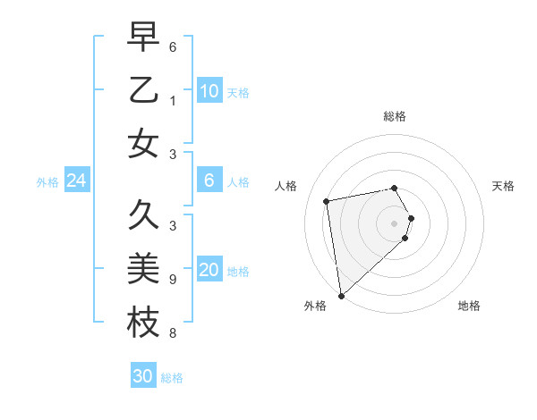 早乙女 久美枝さんを姓名の画数から五運を鑑定