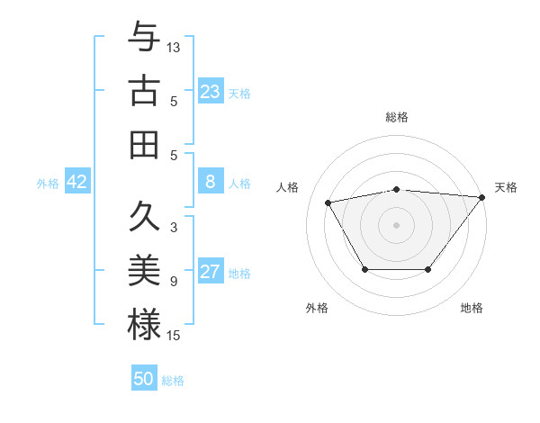 与古田 久美様さんの天格は23画の5点!