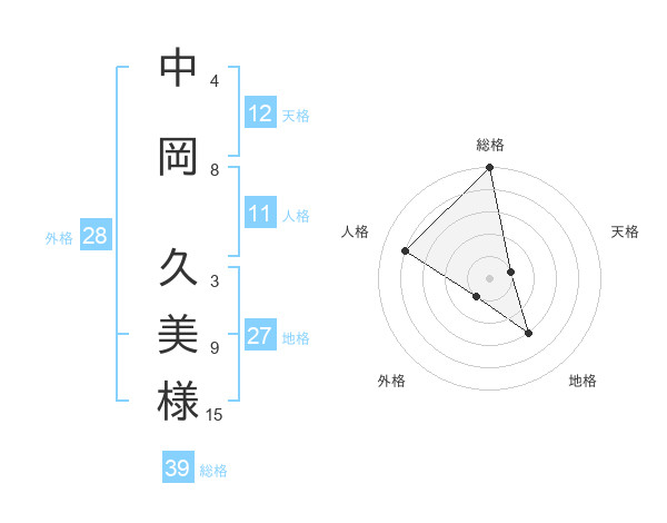中岡 久美様さんを姓名の画数から五運を鑑定