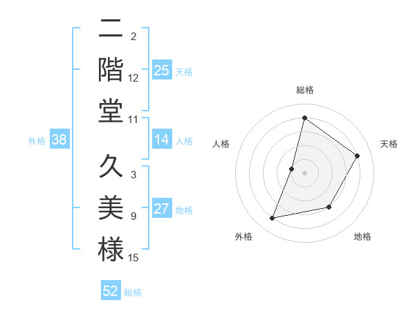 二階堂 久美様さんの天格は25画の4点!