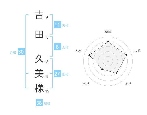 吉田 久美様さんを姓名の画数から五運を鑑定