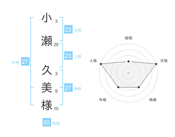 小瀬 久美様さんを姓名の画数から五運を鑑定