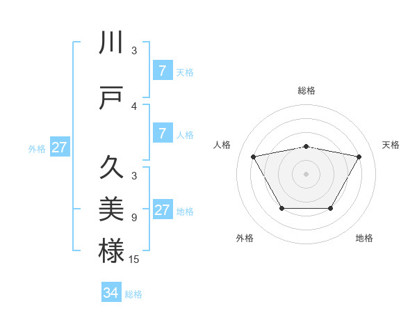 川戸 久美様さんの地格は27画の3点!