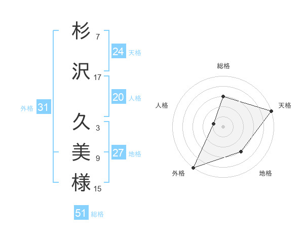 杉沢 久美様さんの総格は51画の3点!