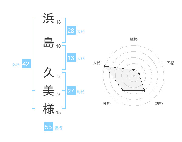 浜島 久美様さんを姓名の画数から五運を鑑定