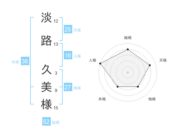 淡路 久美様さんを姓名の画数から五運を鑑定