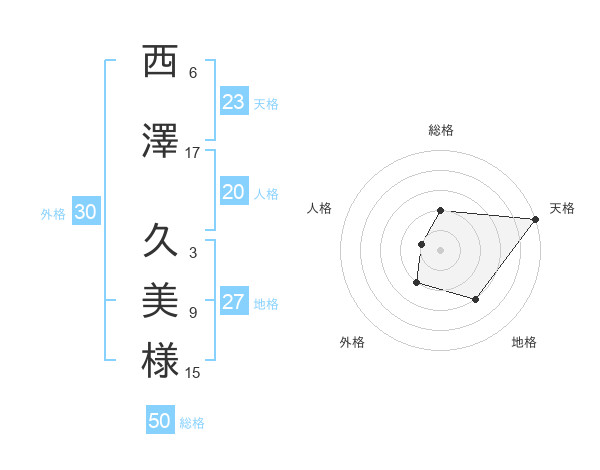 西澤 久美様さんを姓名の画数から五運を鑑定