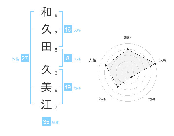 和久田 久美江さんを姓名の画数から五運を鑑定