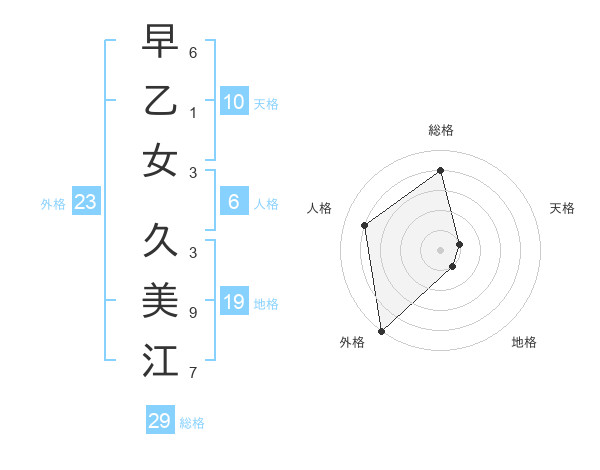 早乙女 久美江さんを姓名の画数から五運を鑑定