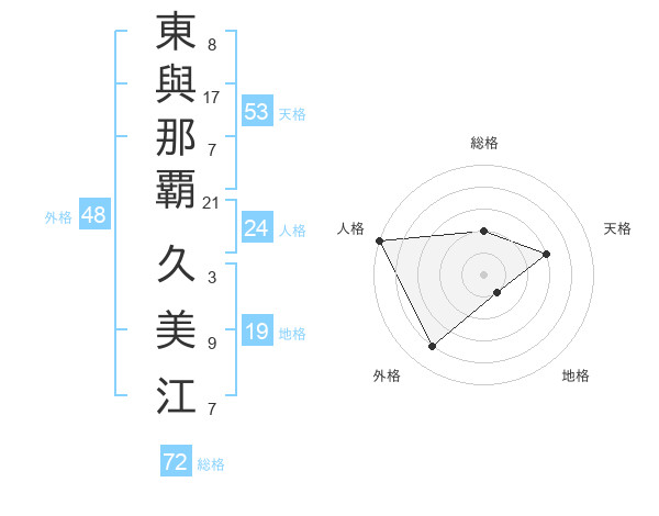 東與那覇 久美江さんの外格は48画の4点!