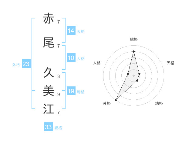 赤尾 久美江さんを姓名の画数から五運を鑑定