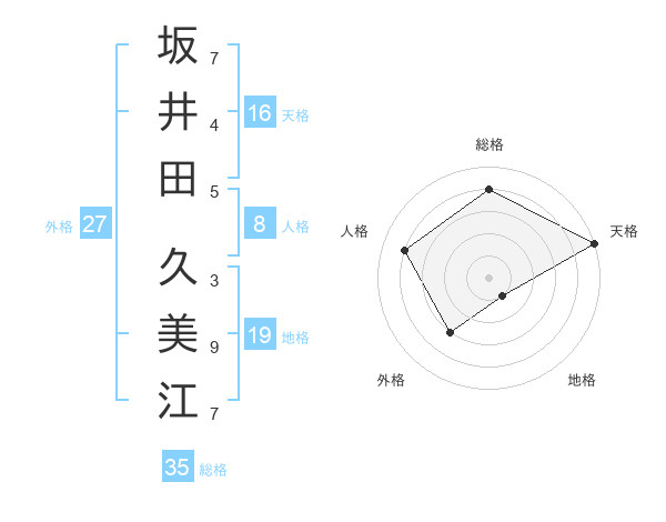 坂井田 久美江さんの総格は35画の4点!