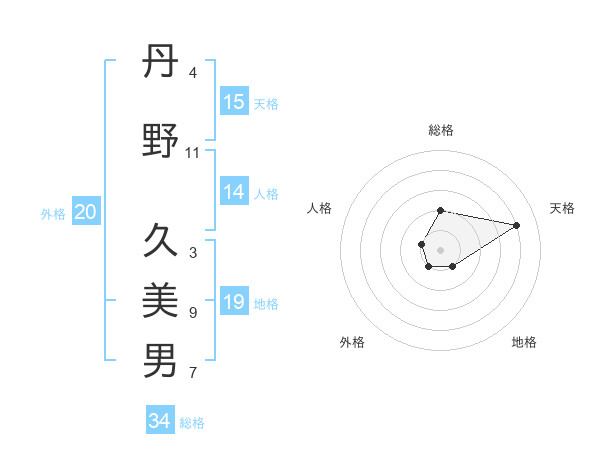 丹野 久美男さんの天格は15画の4点!