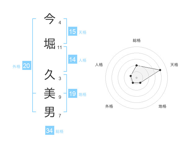 今堀 久美男さんを姓名の画数から五運を鑑定